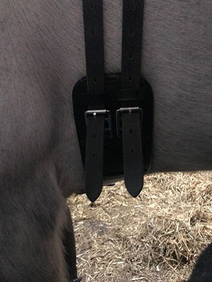 With all girths, the buckles should sit well above the elbow to allow for free elbow movement without restriction. If there is restriction, then the stride will be shortened and the horse will be uncomfortable with the girth affecting his movement.